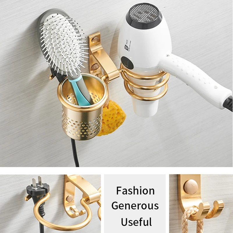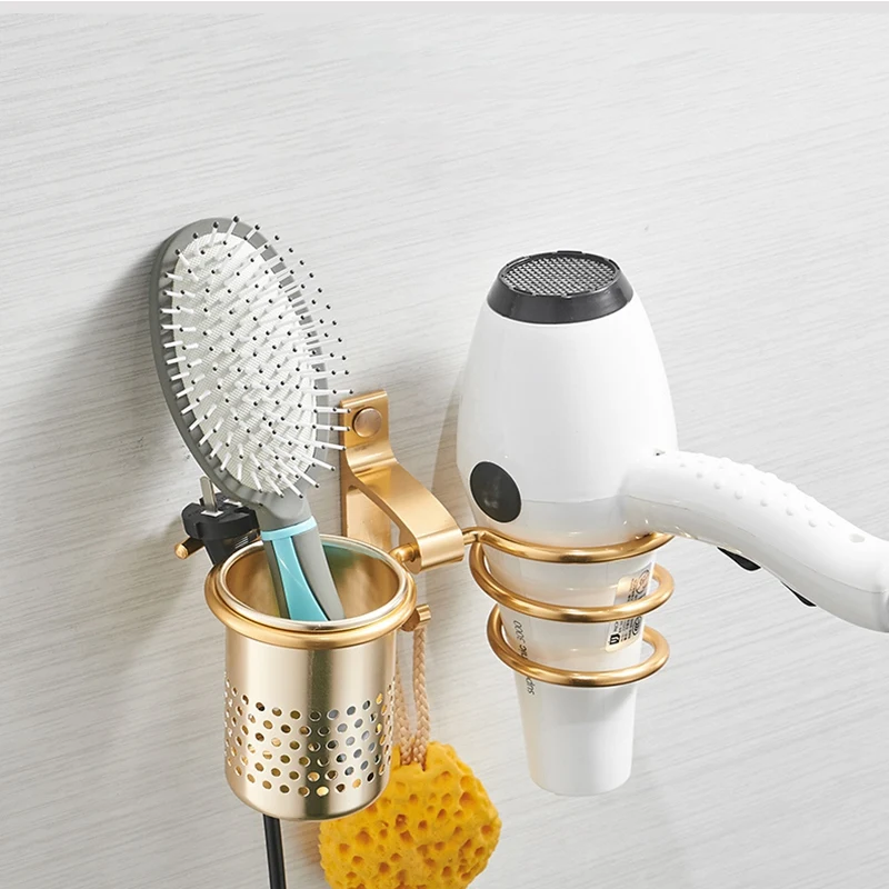 Hair Dryer Holder With Cup Households Rack Hair Blow Dryer Shelf Metal Wall Mount Bathroom Accessor
