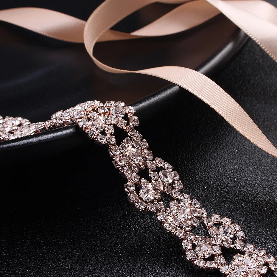 Best Quality SLBRIDAL Rose Gold Wired Clear Crystals Rhinestones Wedding Headband Bridal Stuio Hair Accessories