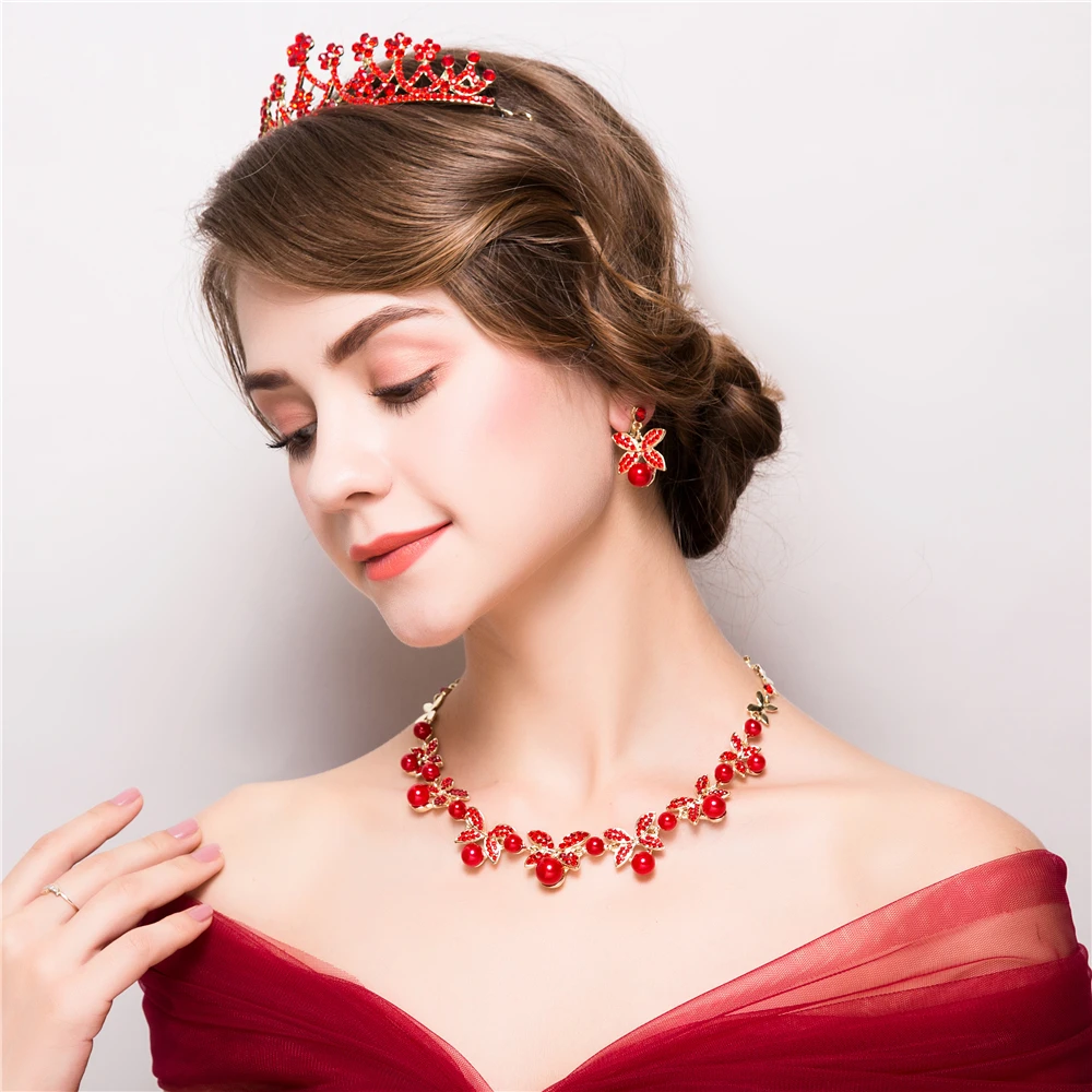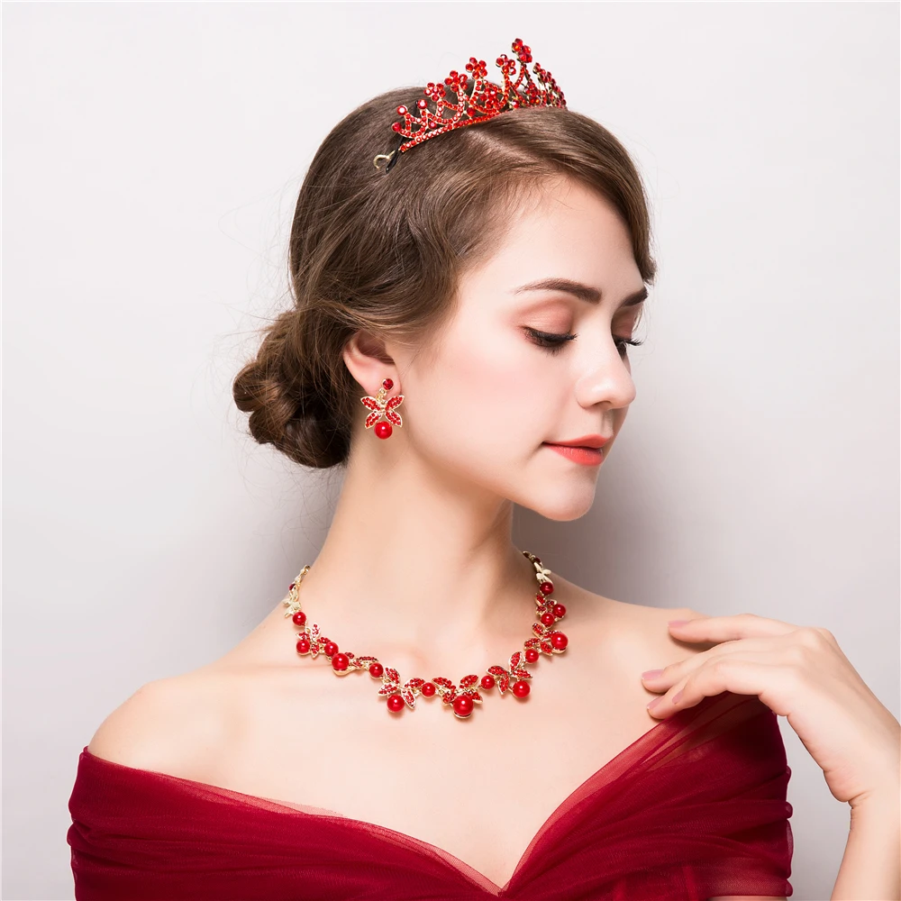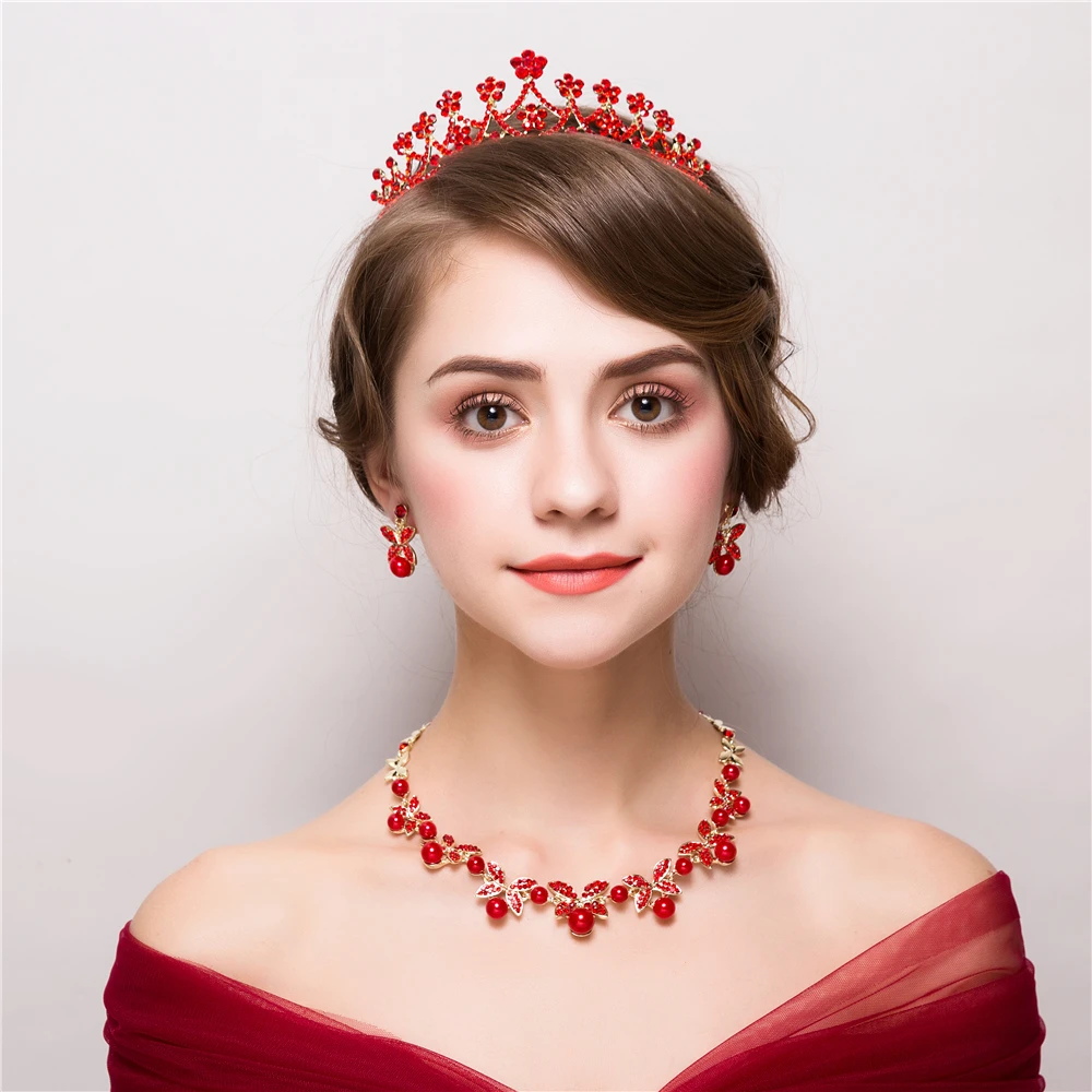BEST SELLER 3PCS/Set Bridal Wedding Jewelry Sets Rhinestone Crown Tiara Hair Ornaments Simulated Pearl Plant De