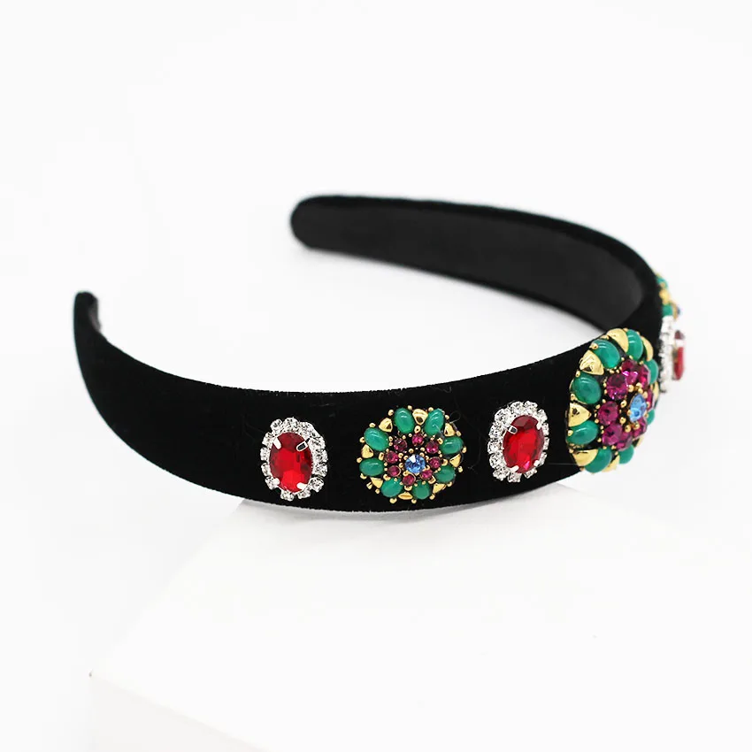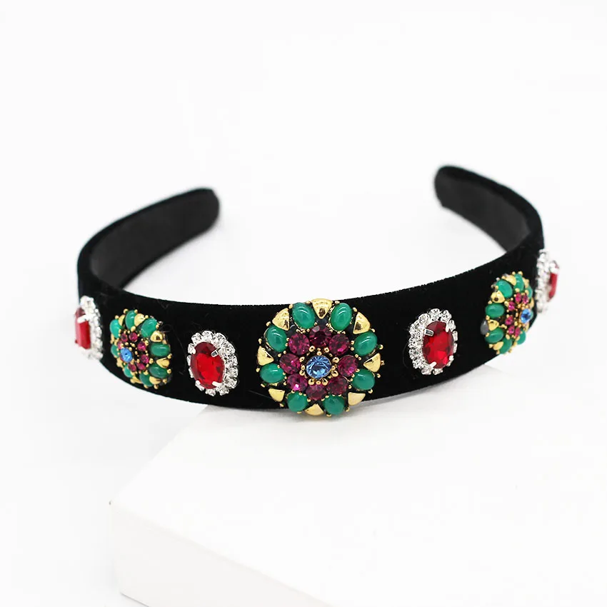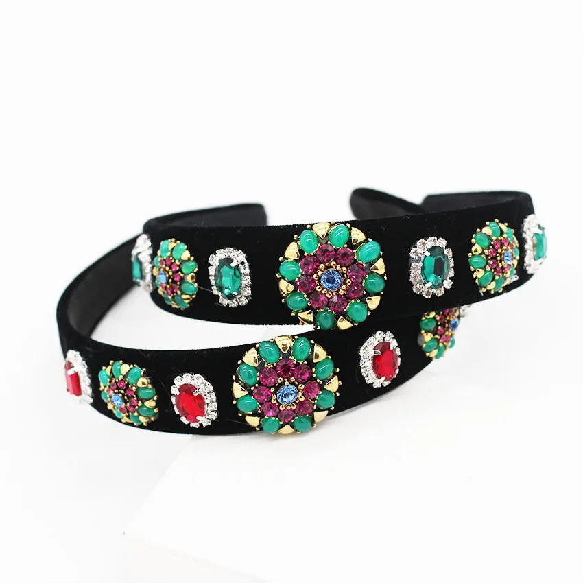 Beautiful fashion temperament ladies headband New fashion Baroque green rhinestone circle flower ha