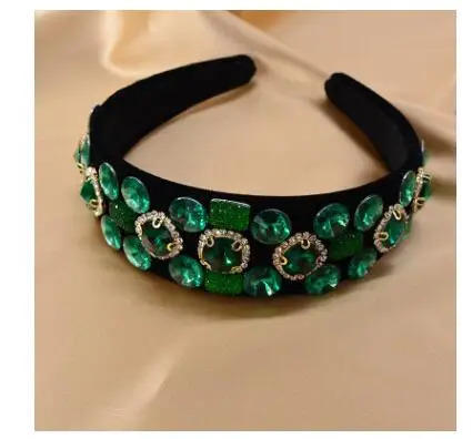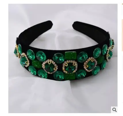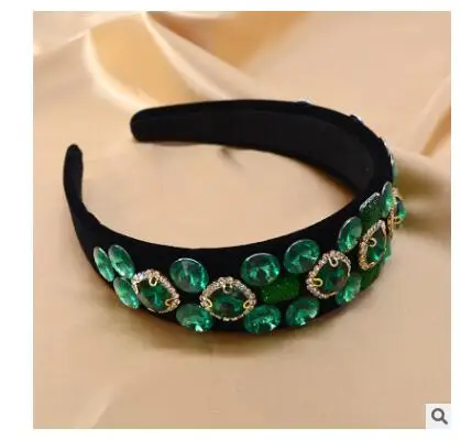 Fashion Headbands women Retro Baroque Dinner Crystal Emerald hairbands Wide Edition Hair Crown Head